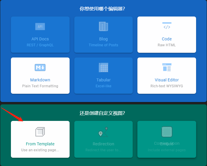 点击右上角的按钮,可以创建新界面。
