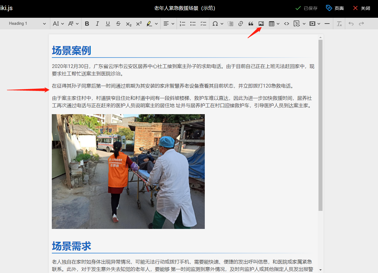选择智慧养老课程文件夹下的老年人紧急救援场景(示范)。再点击选择键。如果你熟悉markdown,可以选图中的markdown编辑,它能获得更灵活的体验。或者你可以选择visual editor进行编辑。